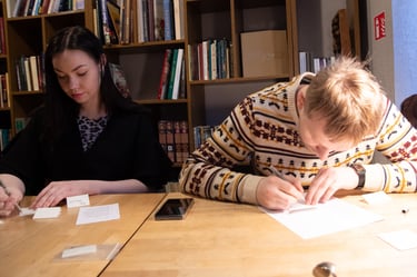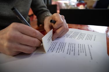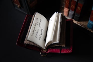 Knygos-objekto „54 miniatiūros“ dvidešimt trečias puslapis (iš knygų ciklo „Polymnijos įkvėptieji“, 2026). Rankraštis.