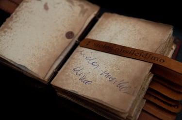 Knygos-objekto „54 miniatiūros“ dvidešimt antras puslapis (iš knygų ciklo „Polymnijos įkvėptieji“, 2026). Rankraštis.