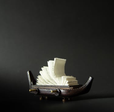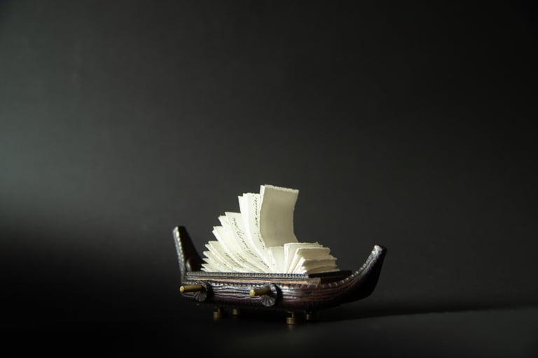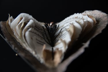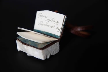 Knygos-objekto „54 miniatiūros“ ketvirtas puslapis (iš knygų ciklo „Polymnijos įkvėptieji“, 2023).