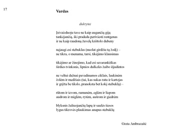 Knygos-objekto „54 miniatiūros“ septynioliktas puslapis (iš knygų ciklo „Polymnijos įkvėptieji“, 2023). Rankraštis.