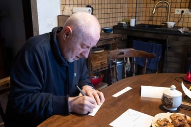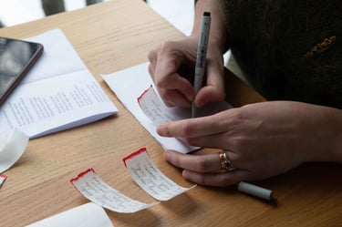 Knygos-objekto „54 miniatiūros“ dvyliktas puslapis (iš knygų ciklo „Polymnijos įkvėptieji“, 2025). Rankraštis.