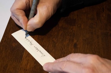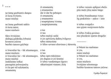 Knygos-objekto „54 miniatiūros“ trečias puslapis (iš knygų ciklo „Polymnijos įkvėptieji“, 2023). Rankraštis.