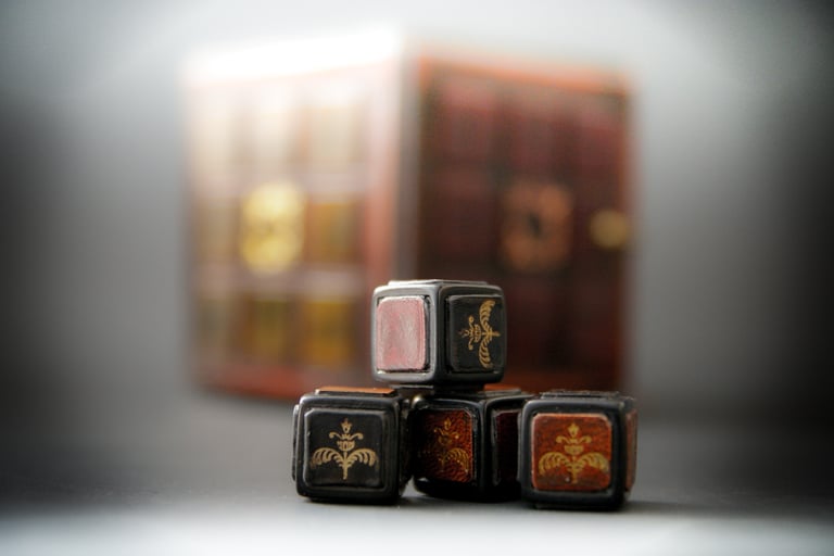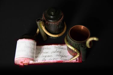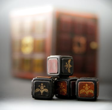 Medžiagos: medis, metalo detalės, popierius, pergamentas.