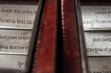 Medžiagos: oda, medis, metalas, popierius.