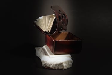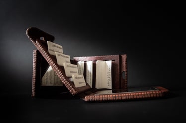 Medžiagos: oda, popierius, kartonas, marmuras.
