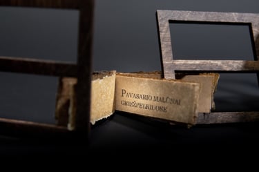 Medžiagos: oda, metalas, popierius, rėmelis.