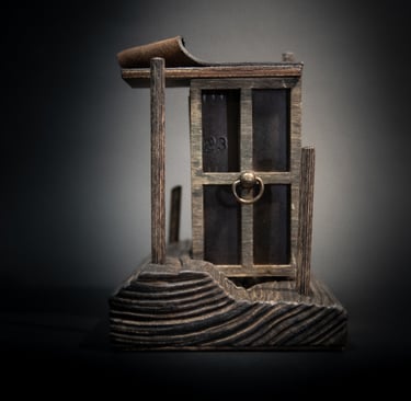 Medžiagos: oda, žalvaris, japoniškas popierius, popierius, medis.