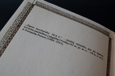 „Sapno mechanika: 36,6 C” – trieilių vėrinėlis, per du kartus suvertas pasitelkus į pagalbą Ovidijų (43 m. pr. m. e. – 18 m. e. m.) ir Fernandą Pessoa (1888 – 1935).