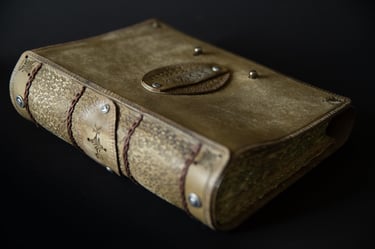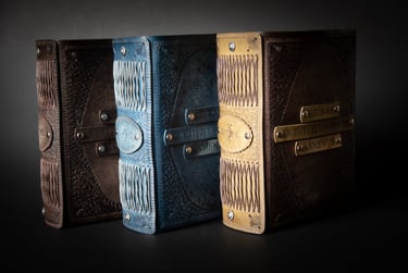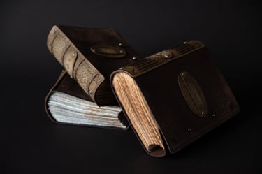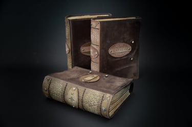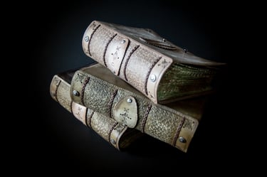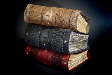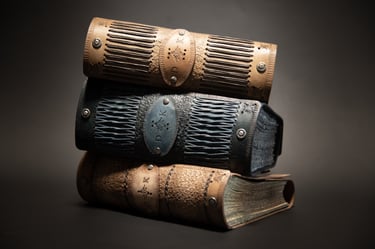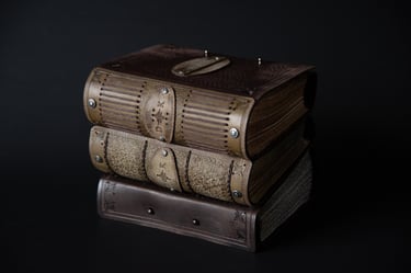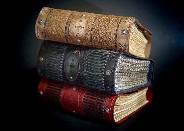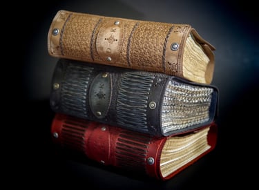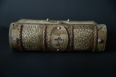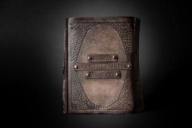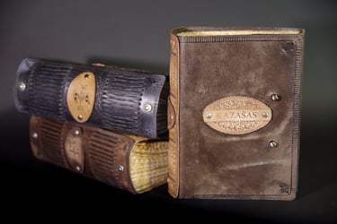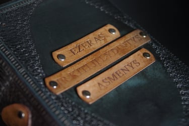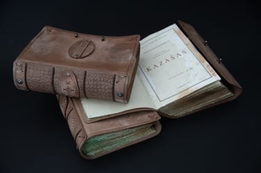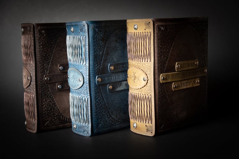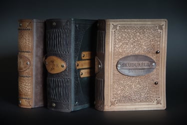 Medžiagos: natūrali oda, knyginis ir japoniškas popierius.