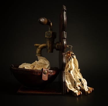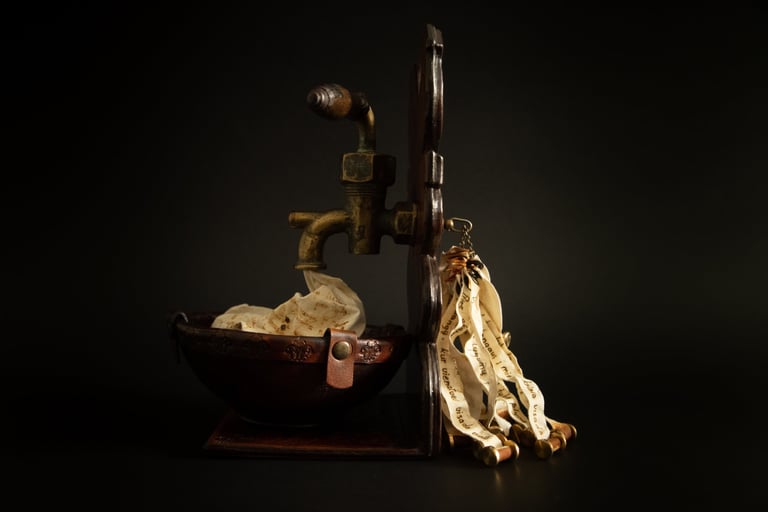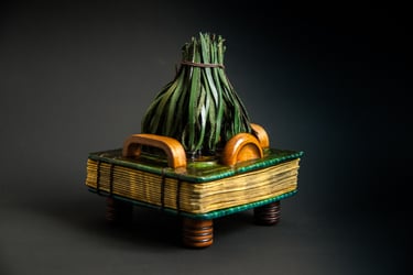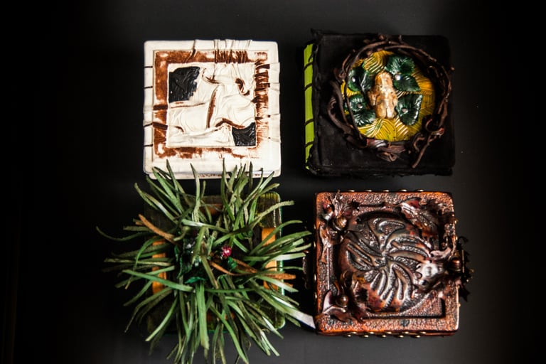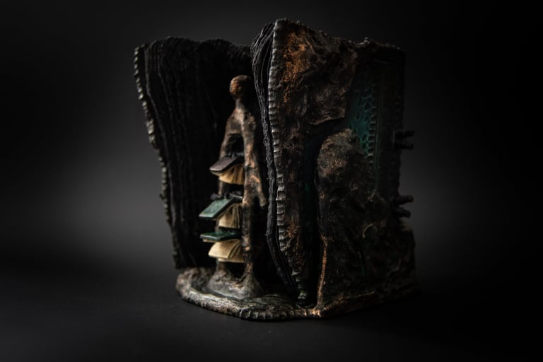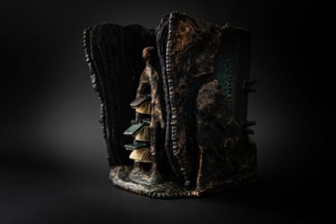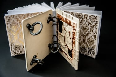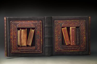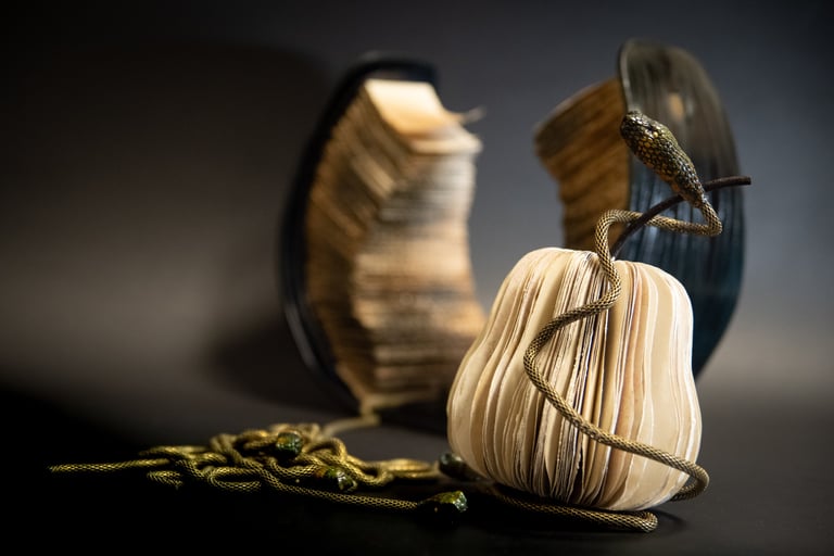 Kūrinio (knygos) esmę dažnai sukuriu remdamasi tiesiog sąvoka, idėja, interpretacija ir tuo pačiu bandau išlaikyti knygai būdingas formas: ritinys, vaško lentelė, atverčiamoji knyga.