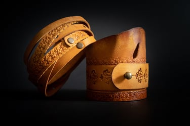 Dauguma gaminių sukurti iš augalinio rauginimo odos. Ji leidžia kurti unikalius darbus ir naudoti senovines dekoravimo technikas: deginimą, odos graviūrą bei giluminius įspaudus.