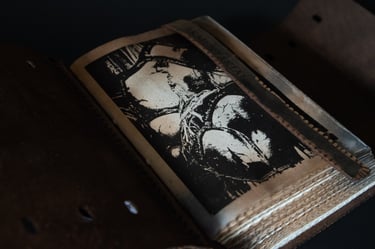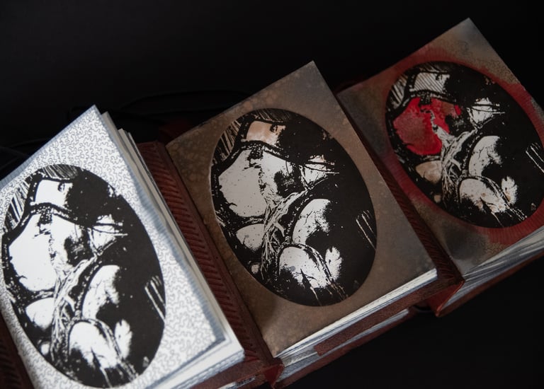 Priešlapiams sukurti buvo panaudotas Velnių muziejaus grindinio fragmentas. Iliustracija – knyga-objektas „Aistra“.